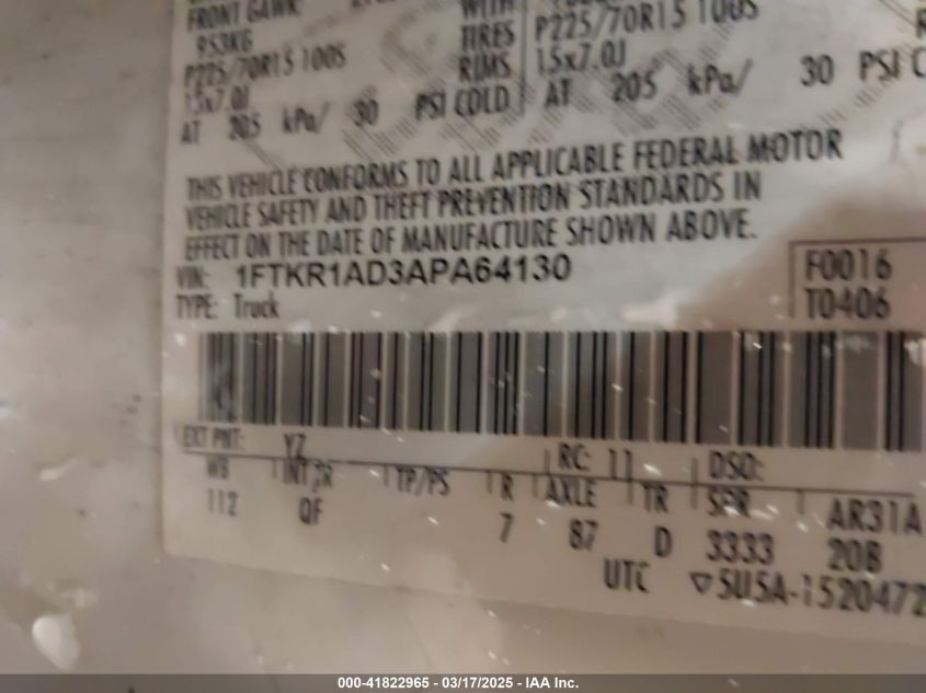 2010 FORD RANGER 2010 року Бензин, 2.3, Неизвестно, vin - 1FTKR1AD3AP****** из США