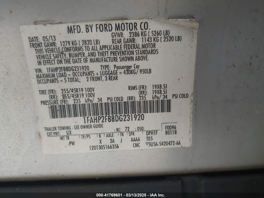 Цвет СеребряныйЦилиндры 6Привод Передний приводVIN 1FAHP2F88DG******Состояние НеизвестноПовреждения Передняя или задняя AutoRIA