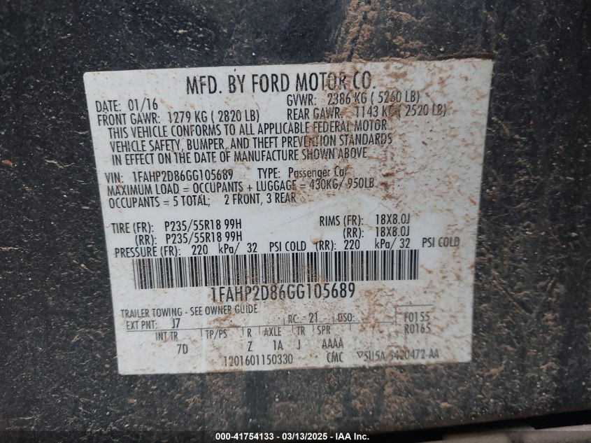 Цвет СерыйЦилиндры 6Привод Передний приводVIN 1FAHP2D86GG******Состояние НеизвестноПовреждения Передняя или задняя AutoRIA
