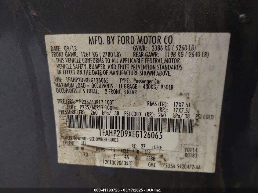 2014 FORD TAURUS 2014 року Бензин, 2.0, Передний привод, vin - 1FAHP2D9XEG****** из США