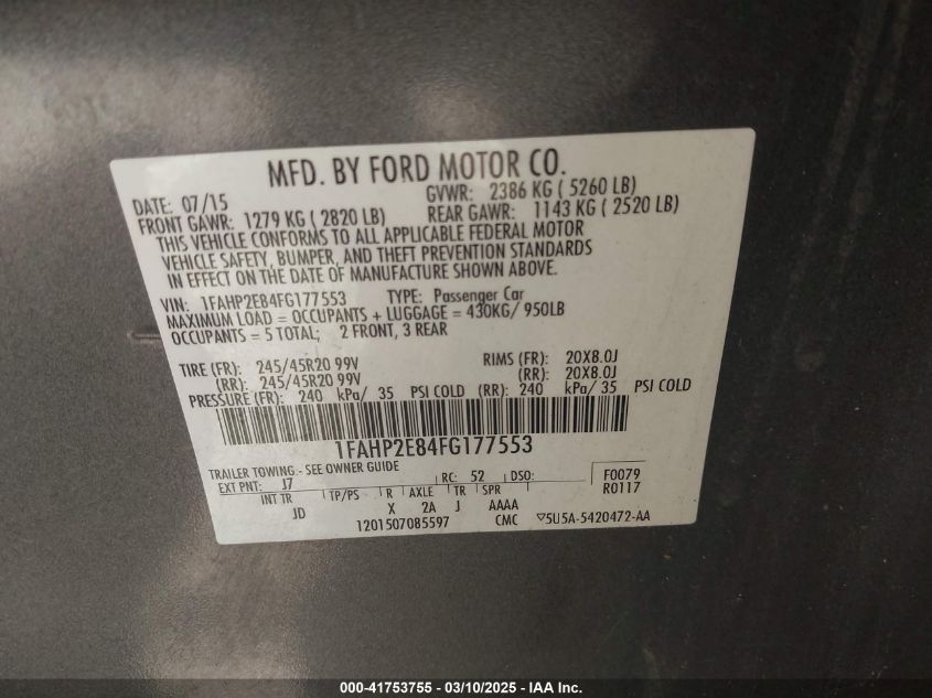 Цвет СерыйЦилиндры 6Привод Передний приводVIN 1FAHP2E84FG******Состояние НеизвестноПовреждения Передняя и задняя AutoRIA