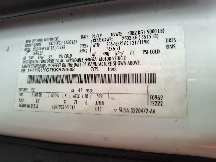 2019 FORD TRANSIT 2019 року Бензин, 3.5, Задний привод, vin - 1FTYR1YG7KK****** из США