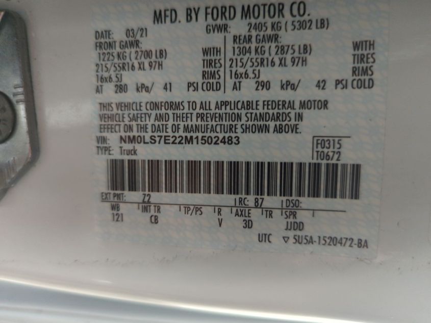 2021 FORD TRANSIT CONNECT 2021 року Бензин, 2.0, Передний привод, vin - NM0LS7E22M1****** из США