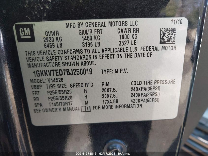 Цвет ЧерныйЦилиндры 6Привод Полный приводVIN 1GKKVTED7BJ******Состояние НеизвестноПовреждения Передняя правая