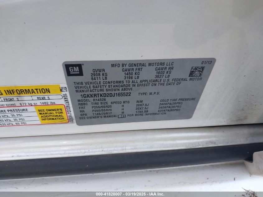 Цвет БелыйЦилиндры 6Привод Передний приводVIN 1GKKRTKD2DJ******Состояние НеизвестноПовреждения Передняя левая AutoRIA
