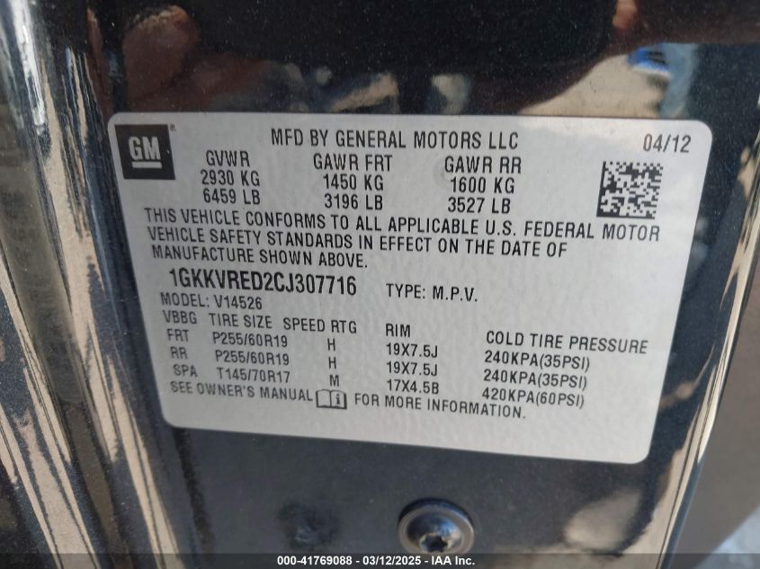 2012 GMC ACADIA 2012 року Бензин, 3.6, Полный привод, vin - 1GKKVRED2CJ****** из США
