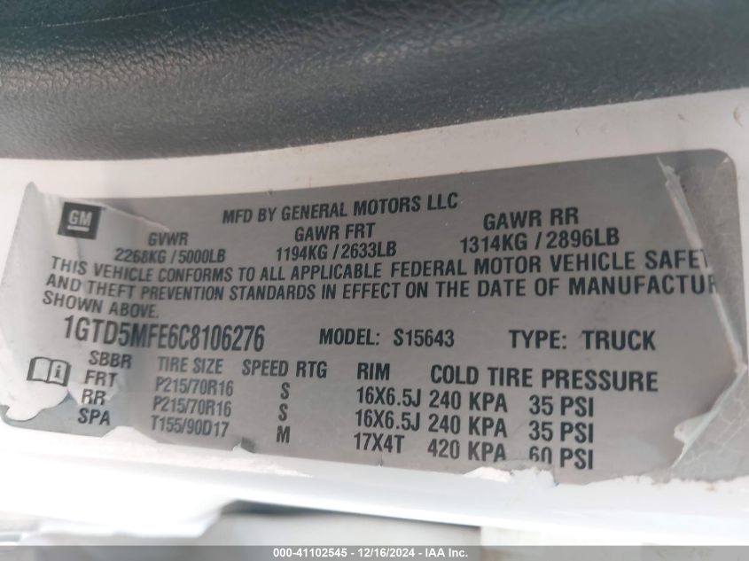 Цвет БелыйЦилиндры 5Привод НеизвестноVIN 1GTD5MFE6C8******Состояние НеизвестноПовреждения Правая сторона