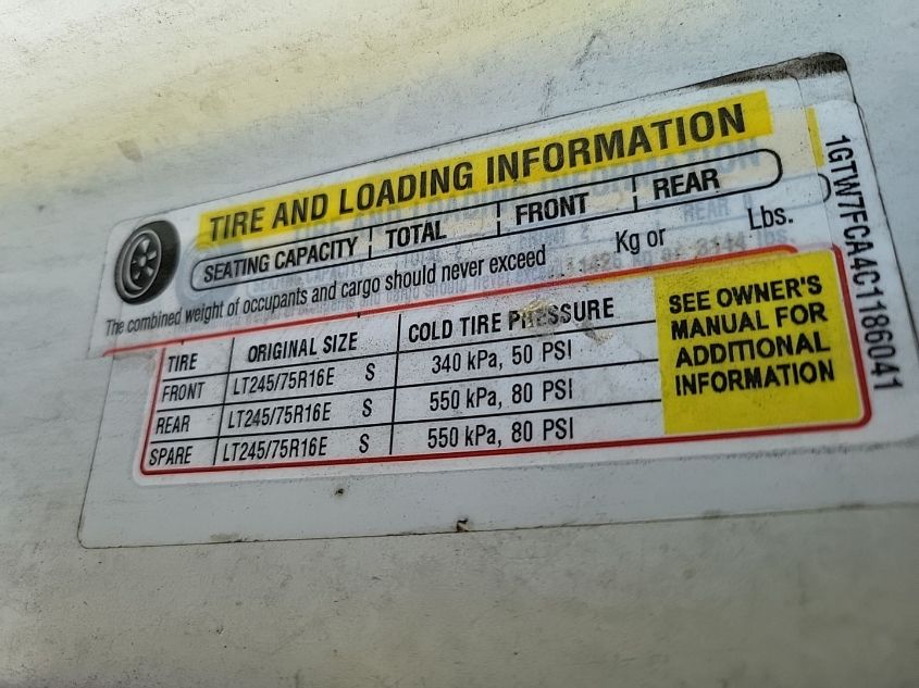 Цвет Цилиндры 8Привод Задний приводVIN 1GTW7FCA4C1******Состояние НеизвестноПовреждения НезначительныеДата аукциона 2025-06-01