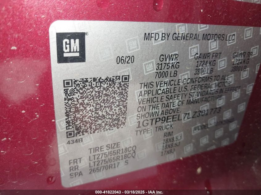 2020 GMC SIERRA 1500 2020 року Бензин, 6.2, Полный привод, vin - 1GTP9EEL7LZ****** из США