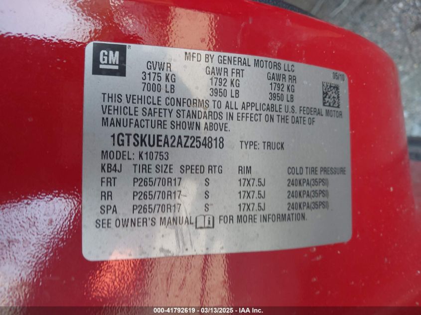 Цвет КрасныйЦилиндры 8Привод Полный приводVIN 1GTSKUEA2AZ******Состояние НеизвестноПовреждения Передняя или задняя