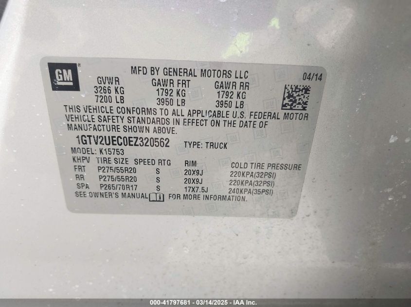 2014 GMC SIERRA 1500 2014 року Бензин, 5.3, Полный привод, vin - 1GTV2UEC0EZ****** из США