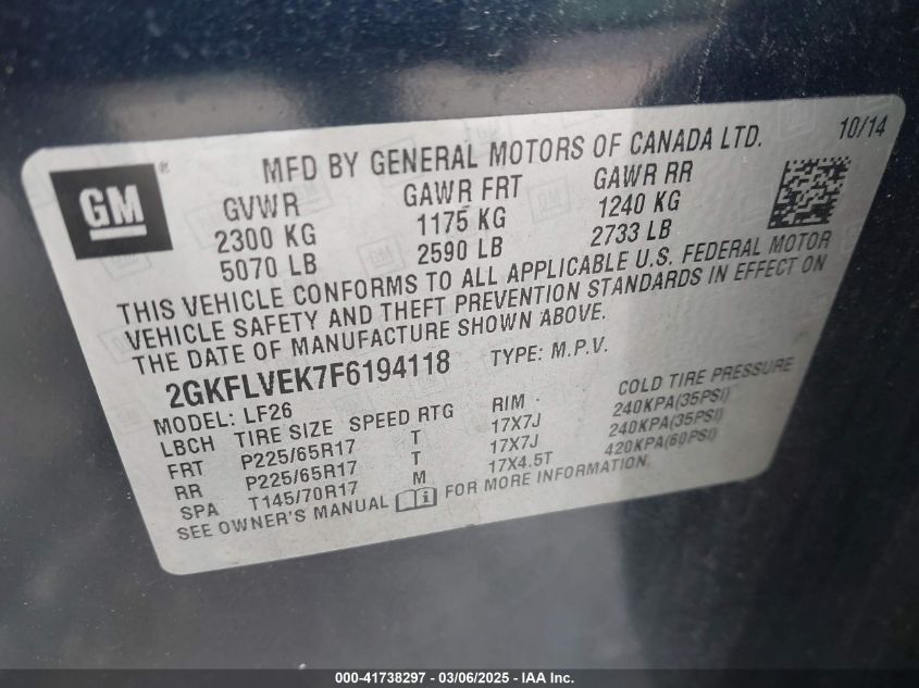 2015 GMC TERRAIN 2015 року Бензин, 2.4, Полный привод, vin - 2GKFLVEK7F6****** из США