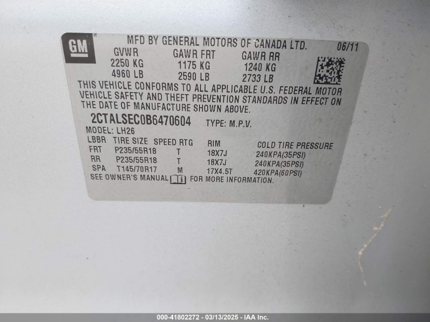 2011 GMC TERRAIN 2011 року Бензин, 2.4, Передний привод, vin - 2CTALSEC0B6****** из США