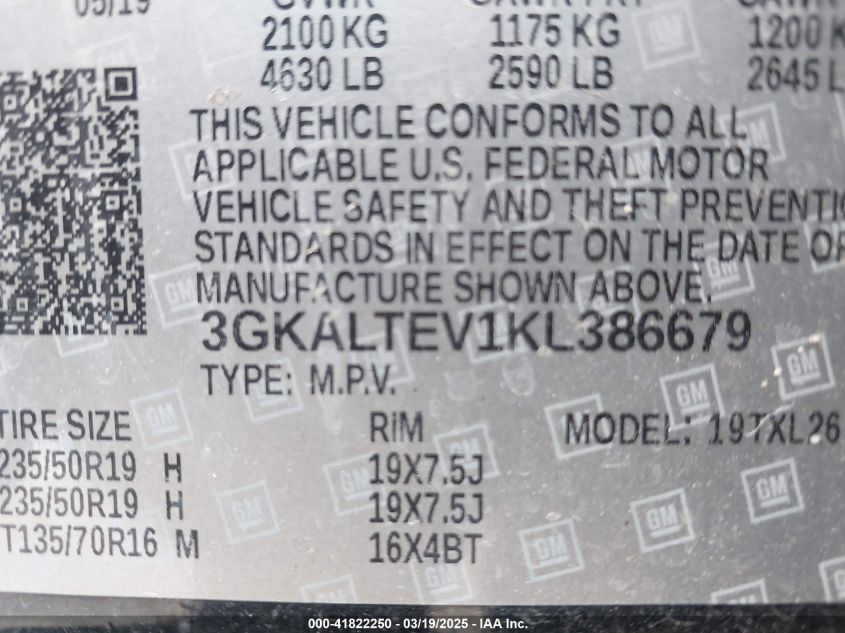 2019 GMC TERRAIN 2019 року Бензин, 1.5, Полный привод, vin - 3GKALTEV1KL****** из США