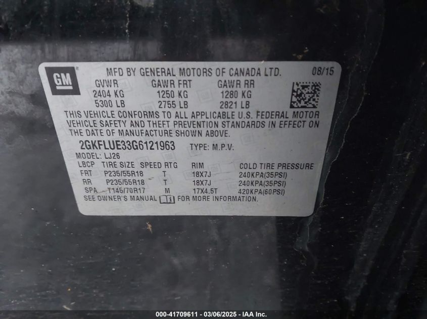 Цвет ЧерныйЦилиндры 6Привод Полный приводVIN 2GKFLUE33G6******Состояние НеизвестноПовреждения Правая сторонаДата аукциона 2025-03-20 AutoRIA