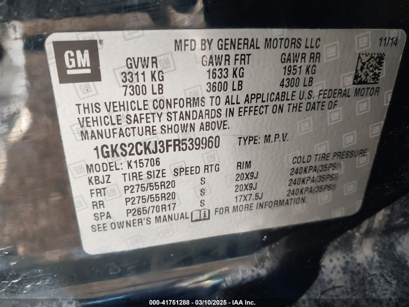 Цвет ЧерныйЦилиндры 8Привод Полный приводVIN 1GKS2CKJ3FR******Состояние НеизвестноПовреждения Передняя правая