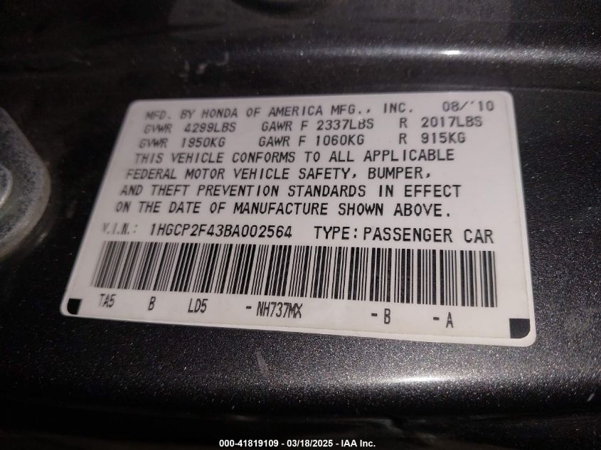 Цвет СерыйЦилиндры 4Привод Передний приводVIN 1HGCP2F43BA******Состояние НеизвестноПовреждения Передняя или задняя AutoRIA