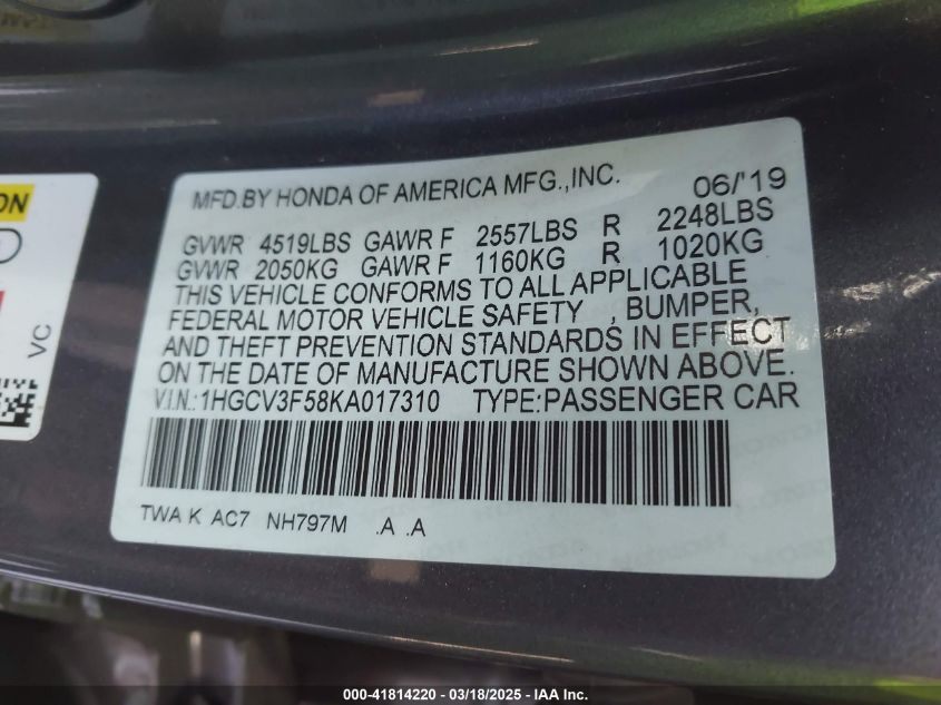 2019 HONDA ACCORD 2019 року Гибрид, 2.0, Передний привод, vin - 1HGCV3F58KA****** из США