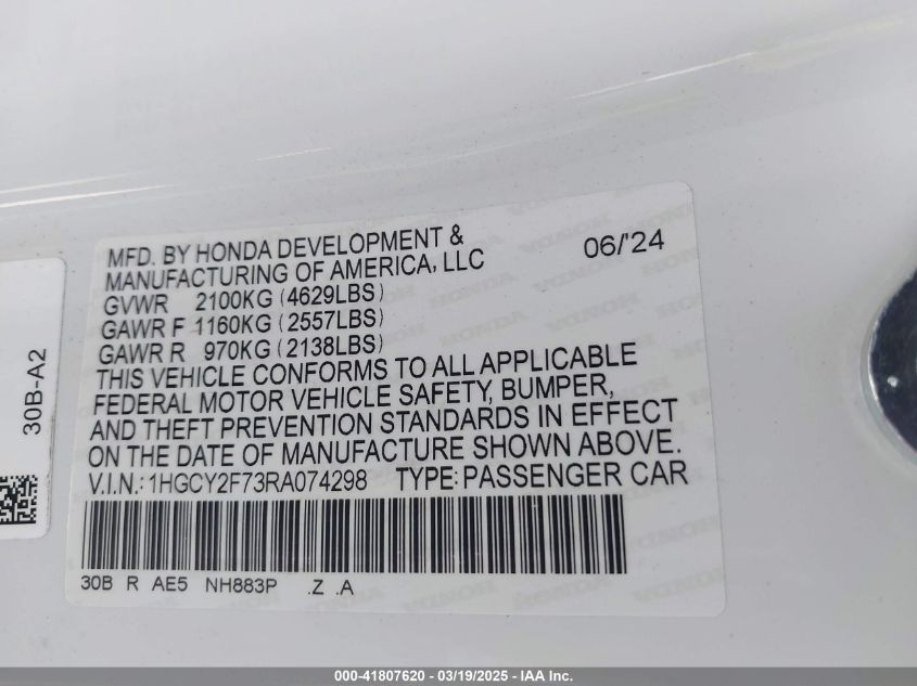 2024 HONDA ACCORD 2024 року Гибрид, 2.0, Передний привод, vin - 1HGCY2F73RA****** из США
