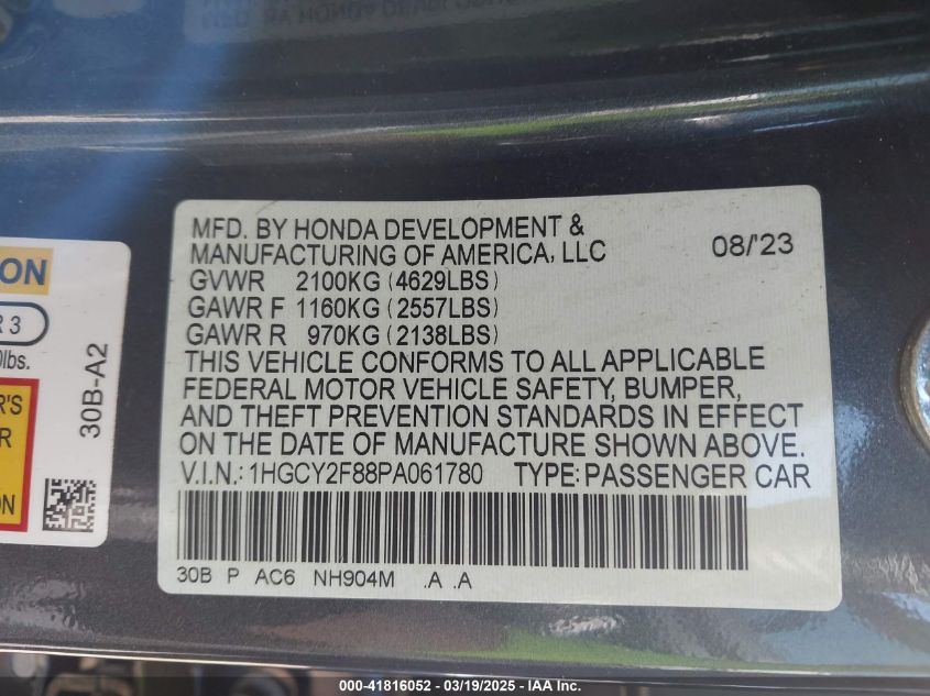 2023 HONDA ACCORD 2023 року Гибрид, 2.0, Передний привод, vin - 1HGCY2F88PA****** из США
