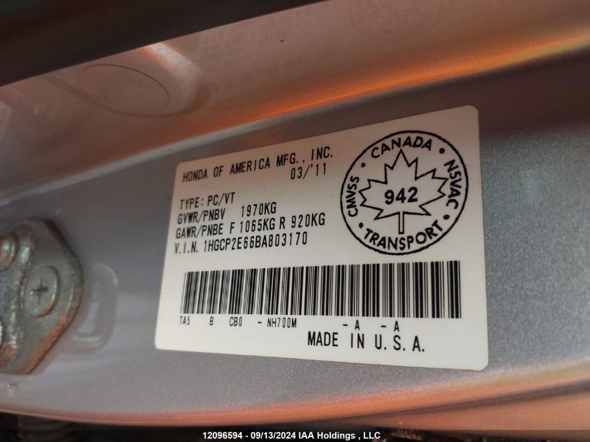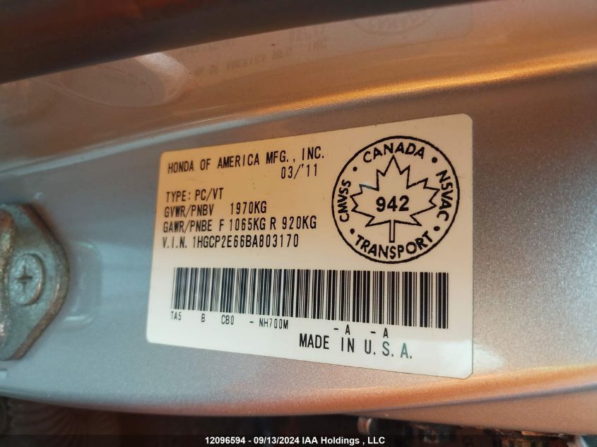 2011 HONDA ACCORD 2011 року Бензин, , Неизвестно, vin - 1HGCP2E66BA****** из США