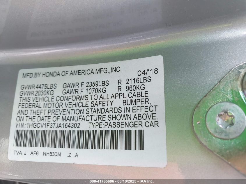 2018 HONDA ACCORD 2018 року Бензин, 1.5, Передний привод, vin - 1HGCV1F37JA****** из США