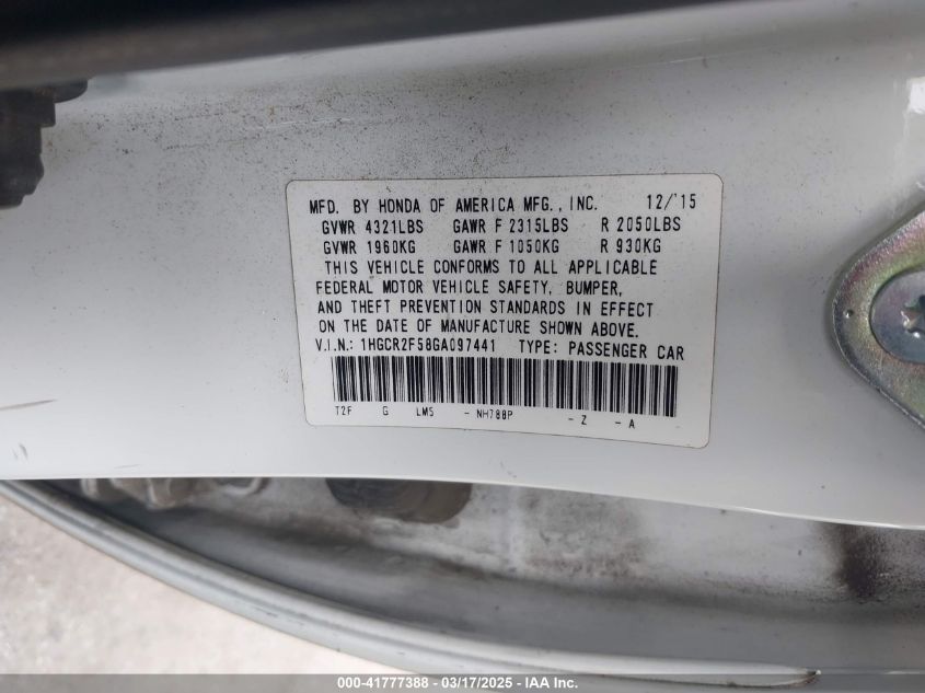 Цвет БелыйЦилиндры 4Привод Передний приводVIN 1HGCR2F58GA******Состояние НеизвестноПовреждения Био/Химические AutoRIA