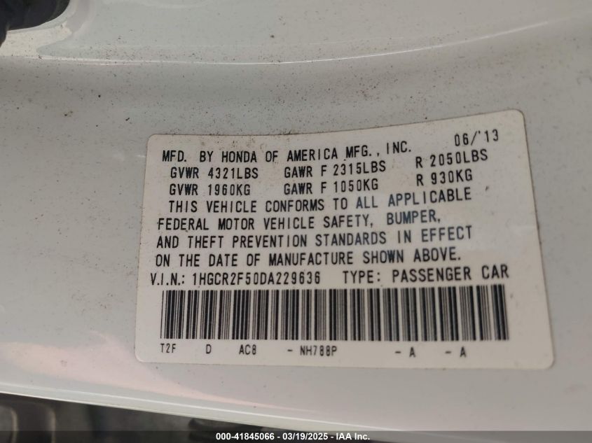 Цвет БелыйЦилиндры 4Привод Передний приводVIN 1HGCR2F50DA******Состояние НеизвестноПовреждения Задняя AutoRIA
