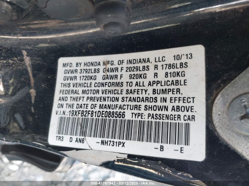 2013 HONDA CIVIC 2013 року Бензин, 1.8, Передний привод, vin - 19XFB2F81DE****** из США