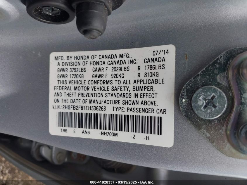 2014 HONDA CIVIC 2014 року Бензин, 1.8, Передний привод, vin - 2HGFB2F81EH****** из США