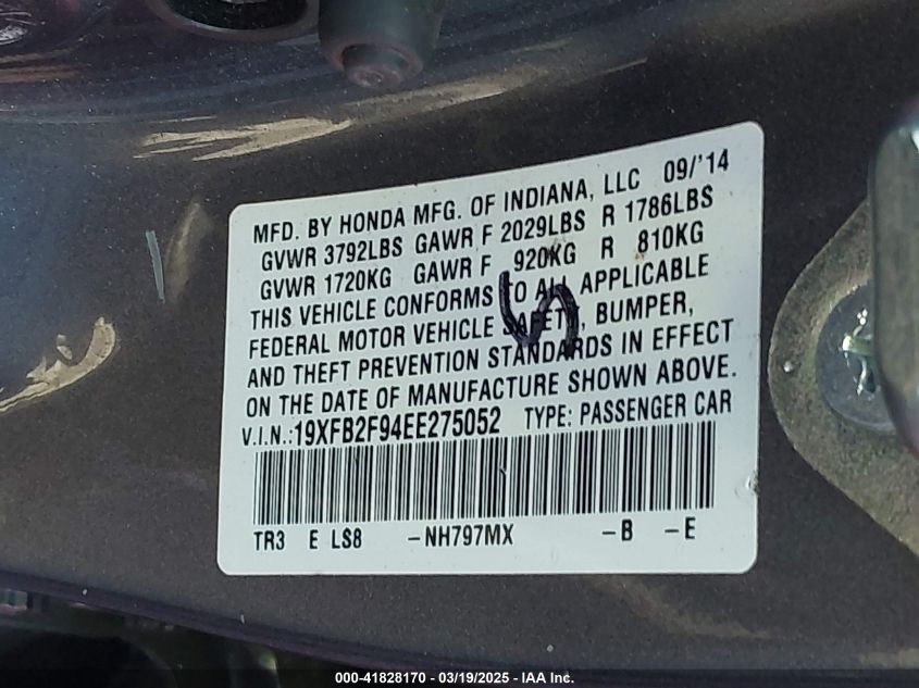 2014 HONDA CIVIC 2014 року Бензин, 1.8, Передний привод, vin - 19XFB2F94EE****** из США