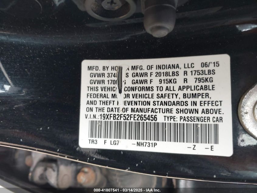 2015 HONDA CIVIC 2015 року Бензин, 1.8, Передний привод, vin - 19XFB2F52FE****** из США