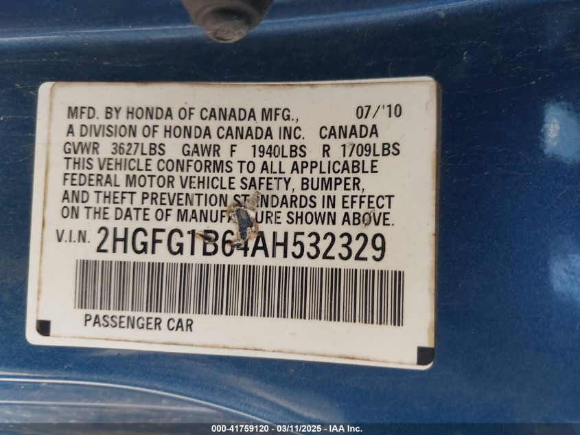 2010 HONDA CIVIC 2010 року Бензин, 1.8, Передний привод, vin - 2HGFG1B64AH****** из США