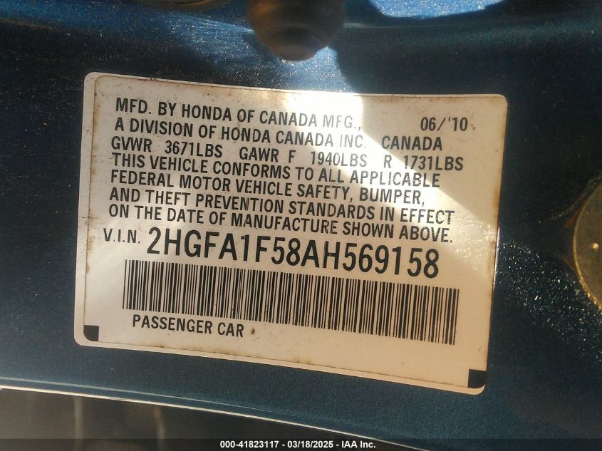 2010 HONDA CIVIC 2010 року Бензин, 1.8, Передний привод, vin - 2HGFA1F58AH****** из США