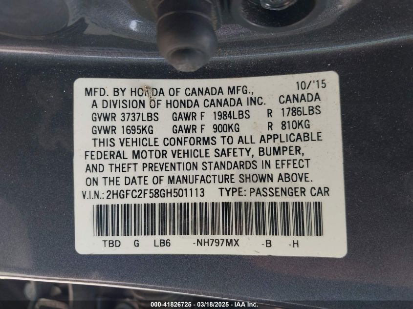 2016 HONDA CIVIC 2016 року Бензин, 2.0, Передний привод, vin - 2HGFC2F58GH****** из США