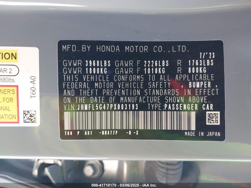 2023 HONDA CIVIC 2023 року Бензин, 2.0, Передний привод, vin - JHMFL5G47PX****** из США