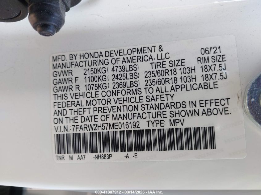 2021 HONDA CR-V 2021 року Бензин, 1.5, Полный привод, vin - 7FARW2H57ME****** из США