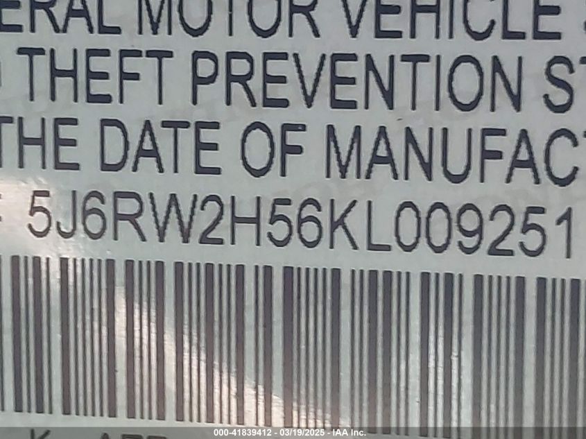 Цвет БордовыйЦилиндры 4Привод Полный приводVIN 5J6RW2H56KL******Состояние НеизвестноПовреждения Передняя или задняя AutoRIA