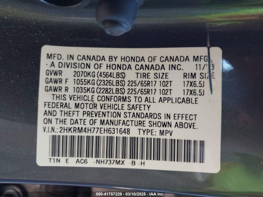 Цвет СерыйЦилиндры 4Привод Полный приводVIN 2HKRM4H77EH******Состояние НеизвестноПовреждения Передняя или задняя AutoRIA