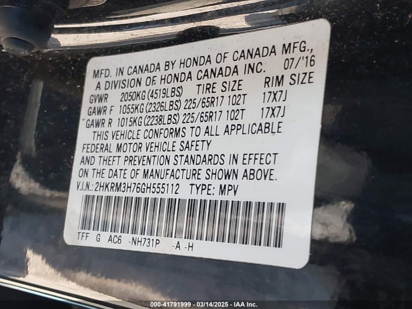 2016 HONDA CR-V 2016 року Бензин, 2.4, Передний привод, vin - 2HKRM3H76GH****** из США