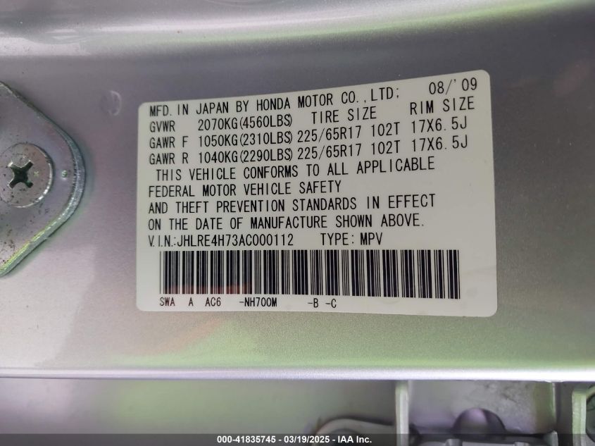 Цвет СеребряныйЦилиндры 4Привод Полный приводVIN JHLRE4H73AC******Состояние НеизвестноПовреждения Передняя или задняя AutoRIA