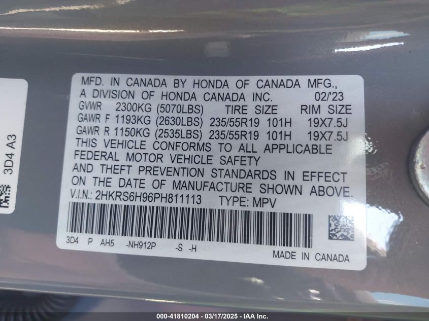2023 HONDA CR-V HYBRID 2023 року Гибрид, 2.0, Полный привод, vin - 2HKRS6H96PH****** из США