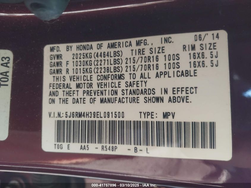 2014 HONDA CR-V 2014 року Бензин, 2.4, Полный привод, vin - 5J6RM4H39EL****** из США