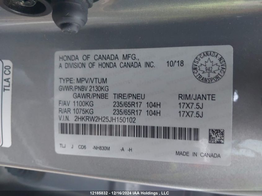 2018 HONDA CR-V 2018 року Бензин, , Неизвестно, vin - 2HKRW2H25JH****** из США