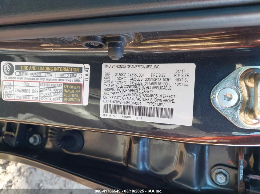 2017 HONDA CR-V 2017 року Бензин, 1.5, Полный привод, vin - 5J6RW2H94HL****** из США
