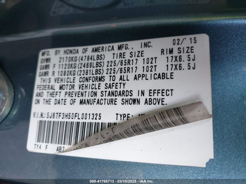 Цвет СинийЦилиндры 4Привод Передний приводVIN 5J6TF3H50FL******Состояние НеизвестноПовреждения Задняя AutoRIA