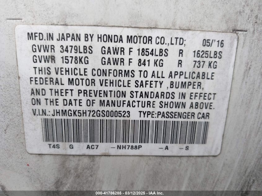 2016 HONDA FIT 2016 року Бензин, 1.5, Передний привод, vin - JHMGK5H72GS****** из США