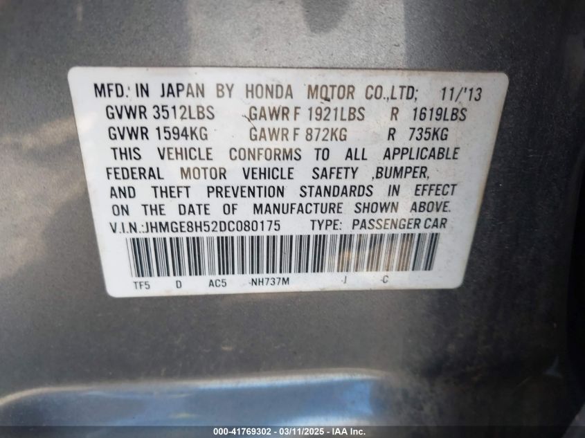 2013 HONDA FIT 2013 року Бензин, 1.5, Передний привод, vin - JHMGE8H52DC****** из США