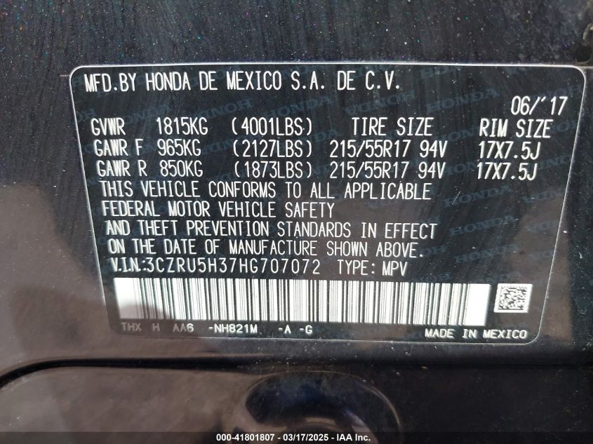 2017 HONDA HR-V 2017 року Бензин, 1.8, Передний привод, vin - 3CZRU5H37HG****** из США