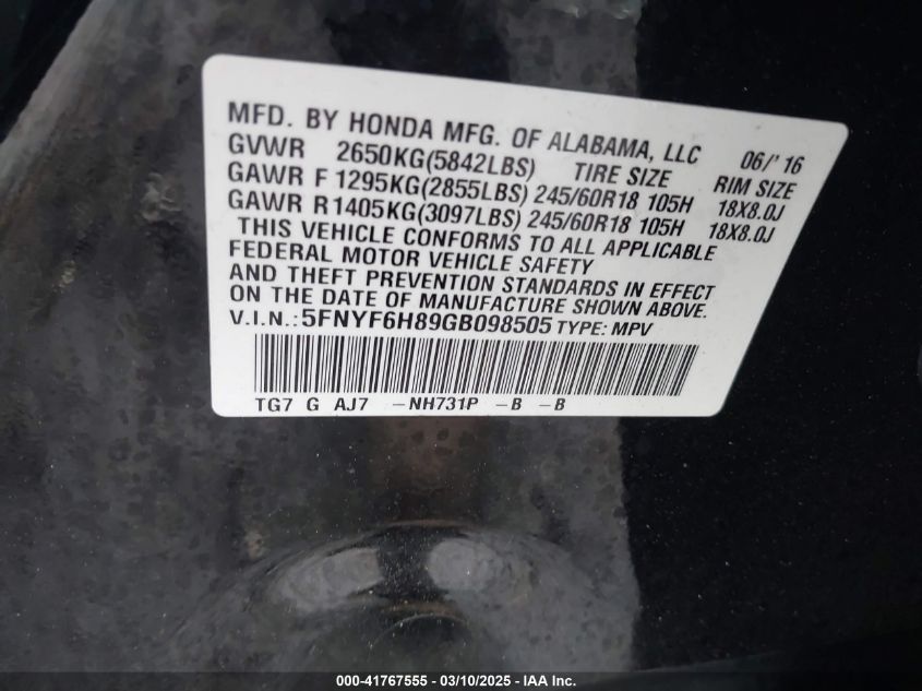 2016 HONDA PILOT 2016 року Бензин, 3.5, Полный привод, vin - 5FNYF6H89GB****** из США